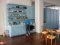 Een keuken die overgaat in een kamerkast, alles met opliggende deuren welke aan de achterkant de slaapkamerkast is. Het geheel geschilderd in een blauwe epoxylak. Aanrecht en wasbak ook in epoxy.