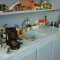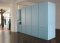 Een keuken die overgaat in een kamerkast, alles met opliggende deuren welke aan de achterkant de slaapkamerkast is. Het geheel geschilderd in een blauwe epoxylak. Aanrecht en wasbak ook in epoxy.