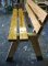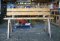 Proefmodellen van gevangenismeubilair. Een tafel en twee verschillende banken van uit Amerika geimporteerd hout.
