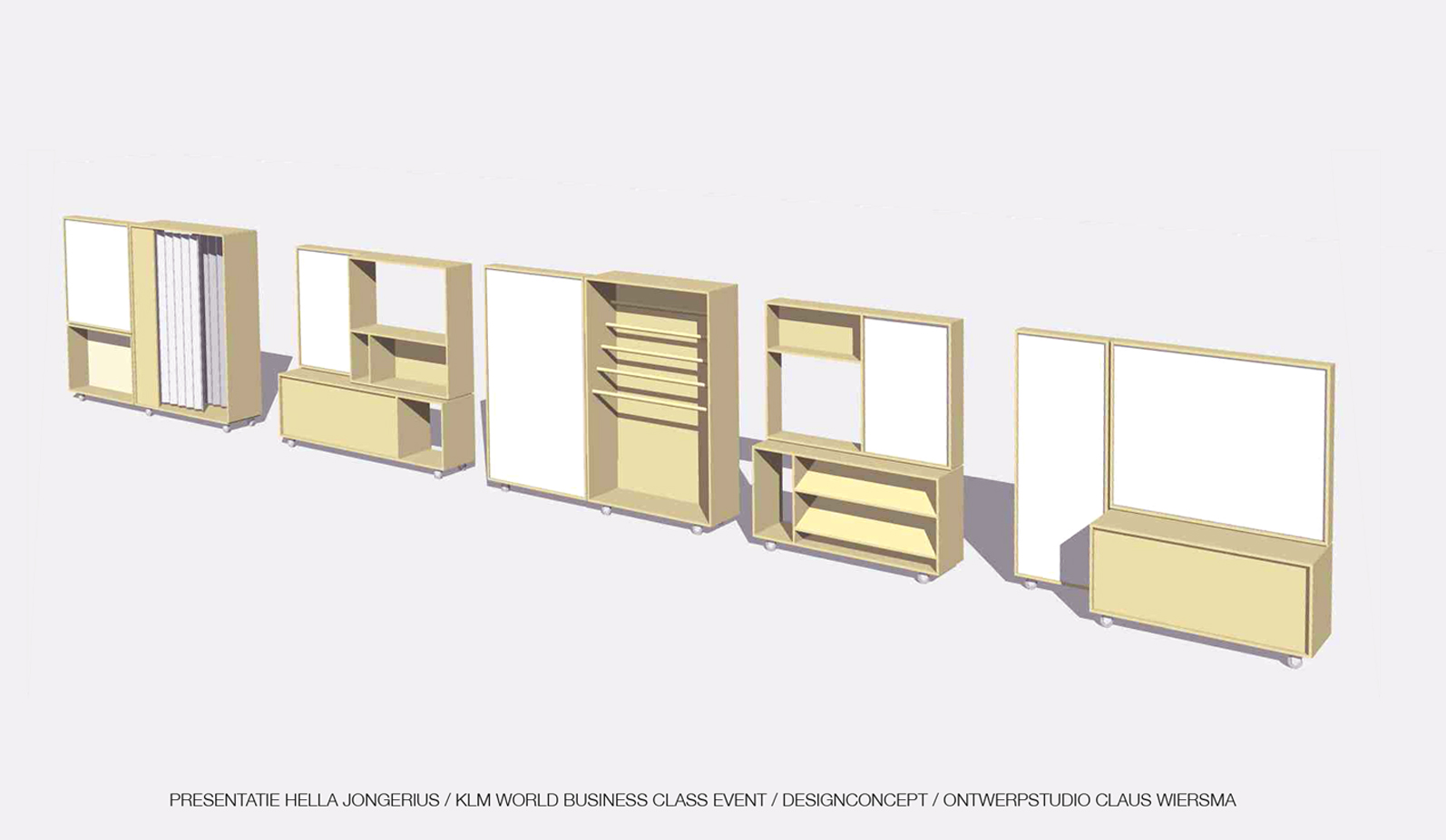 5 Meubels ter presentatie van de nieuwe business klasse van de KLM.
