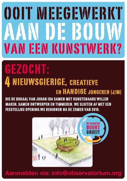 Kunstenaarsgroep Observatorium in Rotterdam, de samenwerking van de kunstenaars Geert van de Camp, Andre Dekker en Ruud Reutelingsperger. Sinds 1997 wijden wij ons aan de verbindingen tussen kunst, landschap en maatschappij. We willen sculptuur maken, die als een gemeenschappelijk goed aanvaard worden, die voor genius loci zorgt en die gebruikt wordt.