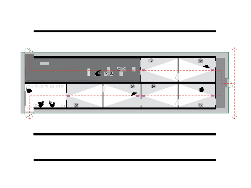 Opbouw en inrichting tentoonstelling, Een lichtbak van 24 x 8 meter hoogte 2,5 meter met drie deuren maakt van de bovenzaal 1 ruimte. Diverse meubelen, verlichting en al het inrichtingswerk.