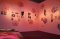 NRC 9 sokkels van 60 x 60 x 300 cm, 4 banken, waarvan 1 met de videoapparatuuren een kamer met uitgezaagde figuren volgens tekening.
